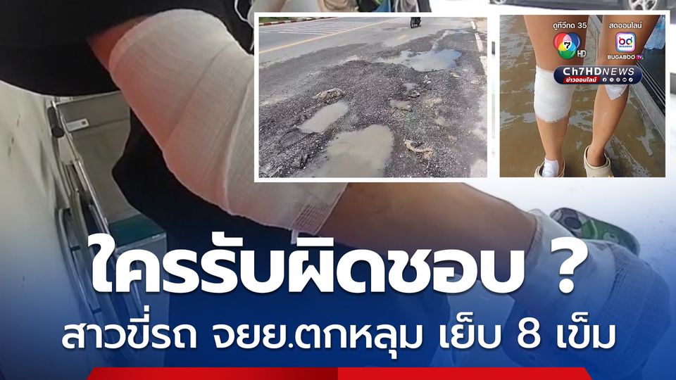 วันนี้ ( 2 มิ.ย.68) ผู้ใช้เฟซบุ๊กชื่อ “ใอแอม ใบเตย” ได้โพสต์คลิปถนนที่เป็นหลุมเป็นบ่อและภาพที่ตนเองได้รับบาดเจ็บ ขี่รถจักรยานยนต์ตกหลุม โดยมีข้อความว่าเจ็บตัวฟรี รถตกหลุม #เย็บไป8เข็ม เลียบคลองสาม พื้นที่เขตธัญบุรี คนแถวนั้นบอกว่าหนูคือรายที่ 3 ที่ตกหลุมนี้ มีหน่วยงานไหนบ้างคะ