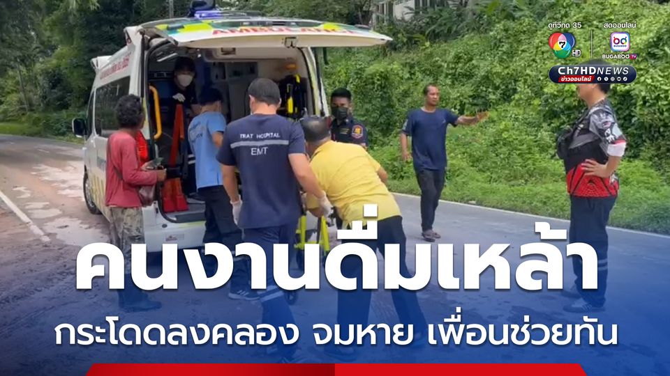 หนุ่มคนงานพักเที่ยงกินข้าว ดื่มเหล้า กระโดดลงคลอง จมหายไป 10 นาที เพื่อนลงไปช่วยได้สำเร็จ