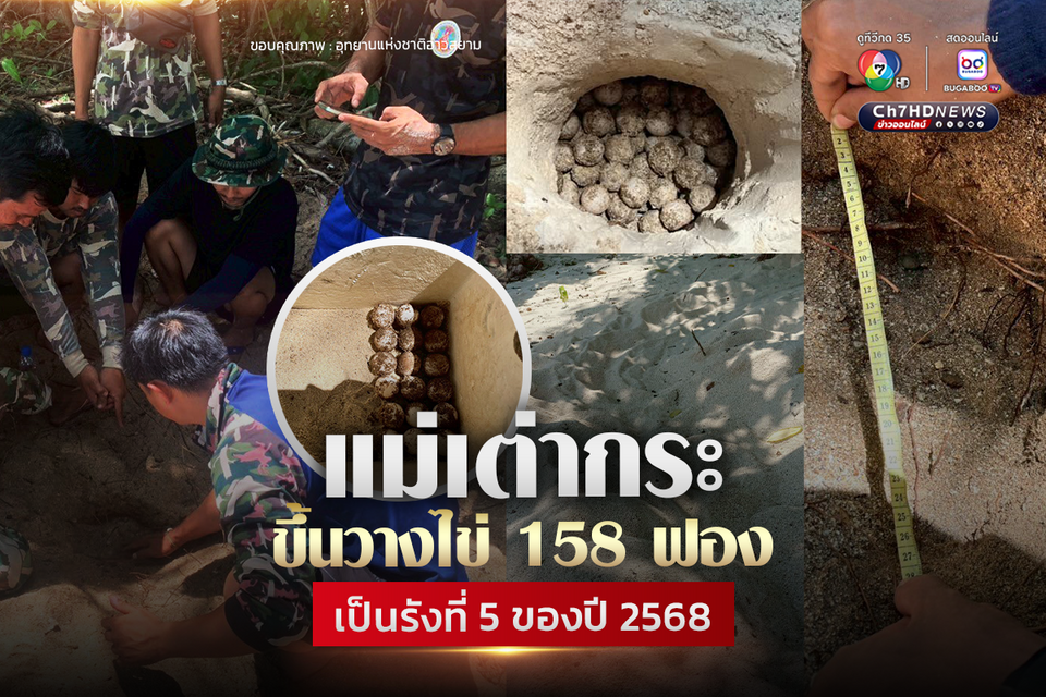 วันที่ 2 มิถุนายน 2568 เจ้าหน้าที่อุทยานแห่งชาติอ่าวสยามร่วมกับเจ้าหน้าที่มูลนิธิฟื้นฟูทรัพยากร ทะเลสยาม เดินลาดตระเวนบนพื้นที่เกาะทะลุ อ.บางสะพานน้อย จ.ประจวบคีรีขันธุ์ พบร่องรอยเเม่เต่ากระ ขึ้นวางไข่บริเวณอ่าวในหุบเล็กของเกาะทะลุ อยู่ในเขตพื้นที่รับผิดชอบของอุทยานแห่งชาติอ่าวสยาม จำนวน 1 รัง ขนาดของหลุมกว้าง 27 เซนติเมตร ลึก 40 เซนติเมตร ไข่ที่พบทั้งหมด 158 ฟอง แต่ไม่พบแม่เต่า นับเป็นรังที่ 5 ของปีงบประมาณ พ.ศ. 2568