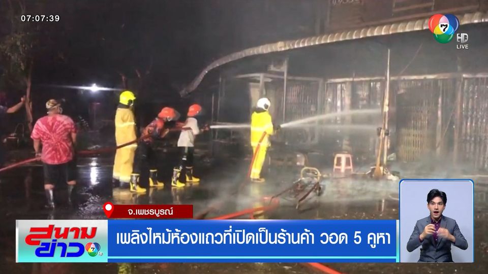สนามข่าว 7 สี - เพลิงไหม้ห้องแถวที่มีวัตถุไวไฟอยู่ด้านใน ทำให้เพลิงลุกลาม มีอาคารถูกเพลิงเผาไหม้ 5 คูหา