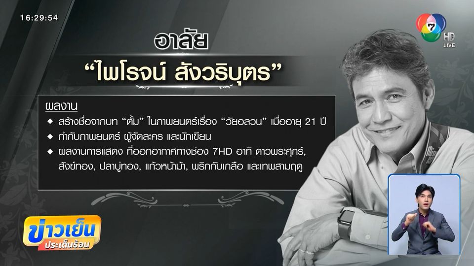 ข่าวเย็นประเด็นร้อน - วงการบันเทิงสูญเสียพระเอกชื่อดัง "ไพโรจน์ สังวริบุตร" ช็อกหมดสติ เจ้าหน้าที่เร่งช่วยปั๊มหัวใจ สุดท้ายเสียชีวิตที่โรงพยาบาลมหาราชนครราชสีมา
