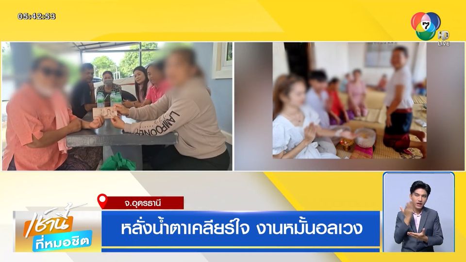แม่ฝ่ายหญิง ยกขันธ์ 5 มาขอโทษ ขอขมา ตา-ยายของฝ่ายชาย ที่บ้านพักจังหวัดอุดรธานี ขอโทษที่อารมณ์ร้อน พูดจารุนแรง ทำให้เกิดความเข้าใจผิด
