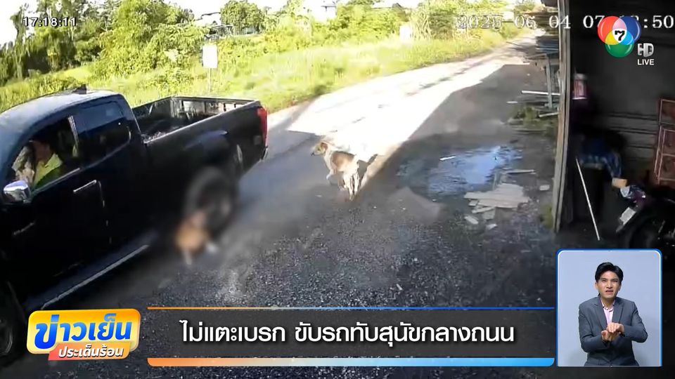 ข่าวเย็นประเด็นร้อน - เหตุการณ์นี้ไม่รู้คนขับรถกระบะสีดำ "ไม่เห็นหรือจงใจ" ขับรถเหยียบหมาที่นอนอยู่กลางถนน จนสุนัขตัวสีน้ำตาล ร้องออกมาด้วยความเจ็บปวด เพื่อน ๆ ของมัน ต่างวิ่งเข้ามาดูอาการ (คลิป)