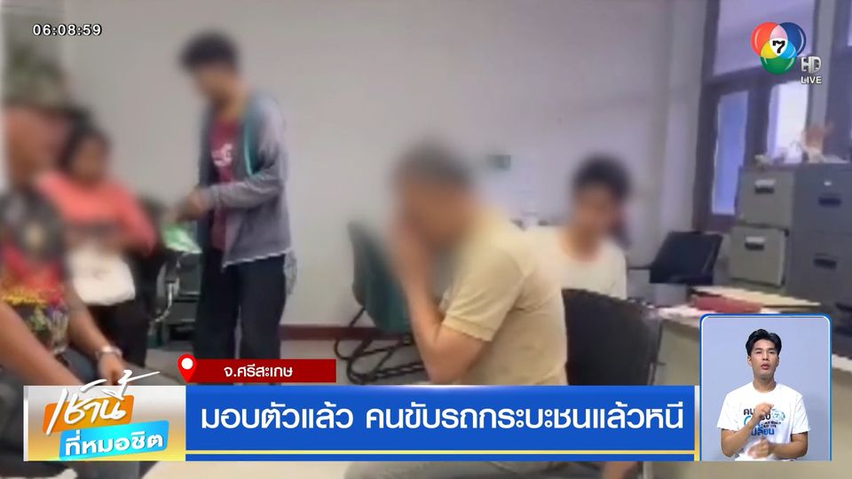 เช้านี้ที่หมอชิต - ตามความคืบหน้าคดี จังหวัดศรีสะเกษ กรณีรถกระบะขับชนรถจักรยานยนต์วัยรุ่น มีผู้บาดเจ็บสาหัส 1 คน แล้วหลบหนี บ่ายเมื่อวานนี้ คนขับรถกระบะเข้ามอบตำรวจแล้ว