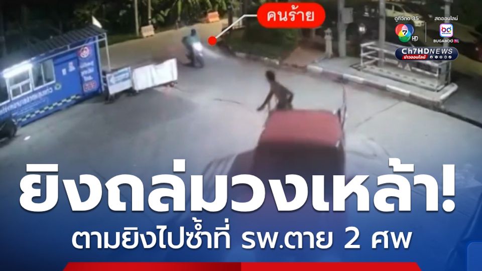 สนามข่าว 7 สี - คนร้ายแต่งกายคล้ายกับไรเดอร์ สาดกระสุนยิงใส่วงเหล้า มีผู้บาดเจ็บ 2 คน ขณะเพื่อน ๆ นำผู้บาดเจ็บส่งโรงพยาบาล คนร้ายถูกตามยิงซ้ำ