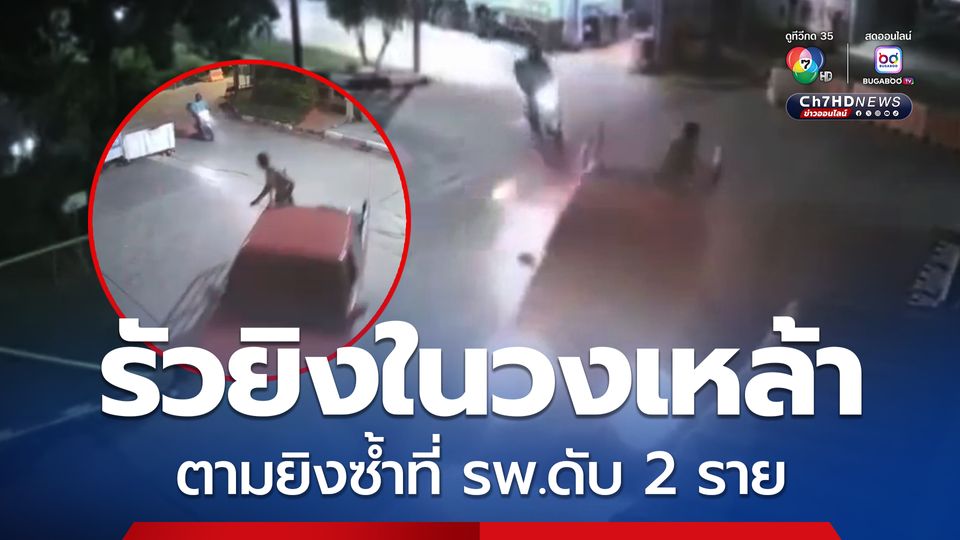 มือปืนโหด แต่งชุดไรเดอร์ รัวยิงกว่า 20 นัดในวงเหล้า ตามยิงซ้ำที่ รพ.ดับ 2 ราย กระสุนยังทะลุกระจกเข้าไปในห้องพักผู้ป่วย หนีตายอลหม่าน