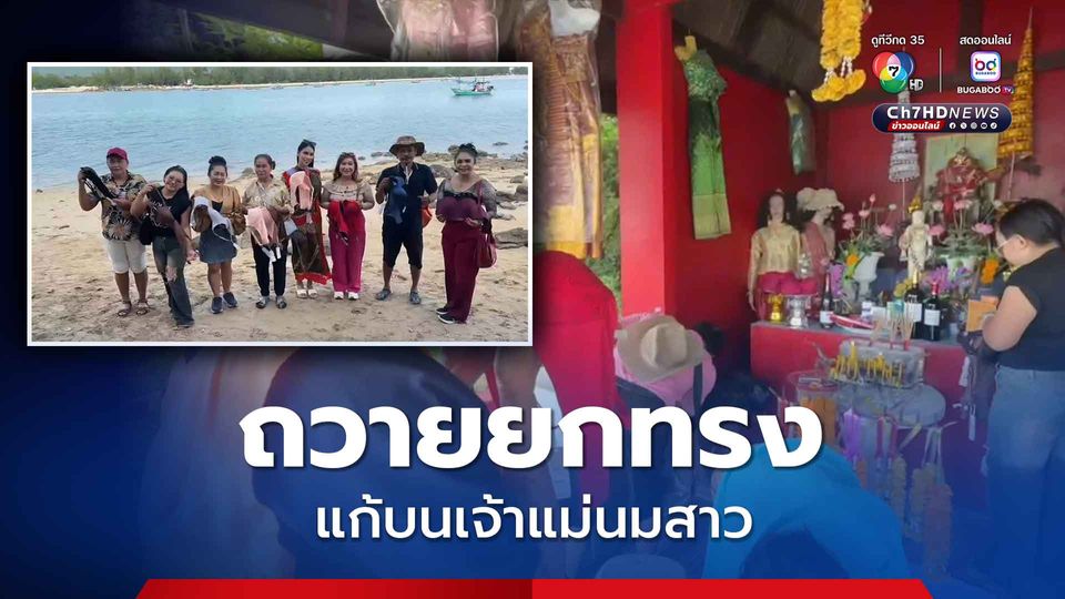 ชาวบ้านแห่ถวายยกทรงให้เจ้าแม่นมสาว หลังสมหวังตามที่บนบานไว้