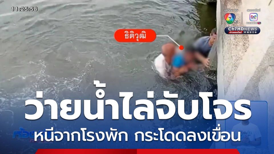 ห้องข่าวภาคเที่ยง - เกิดเหตุระทึก ตำรวจสนธิกำลังไล่จับโจรลักทรัพย์ หลังสะบัดกุญแจมือวิ่งหนีจากโรงพัก แล้วกระโดดลงแม่น้ำปากพนัง