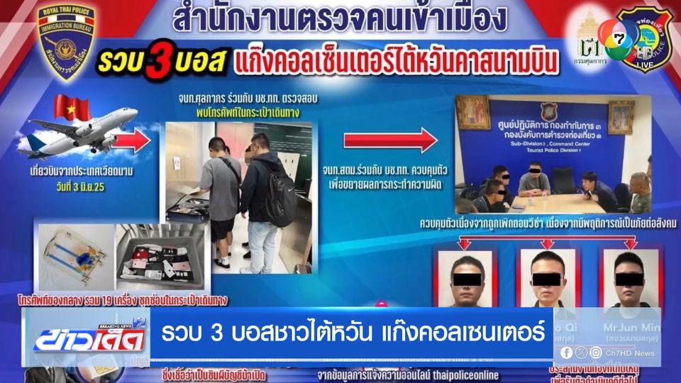 ข่าวเด็ด 7 สี - เร่งสกัดจับชาวไต้หวัน 3 คน ลักลอบนำโทรศัพท์มือถือ 19 เครื่อง ตรวจพบความเชื่อมโยงแก๊งคอลเซนเตอร์