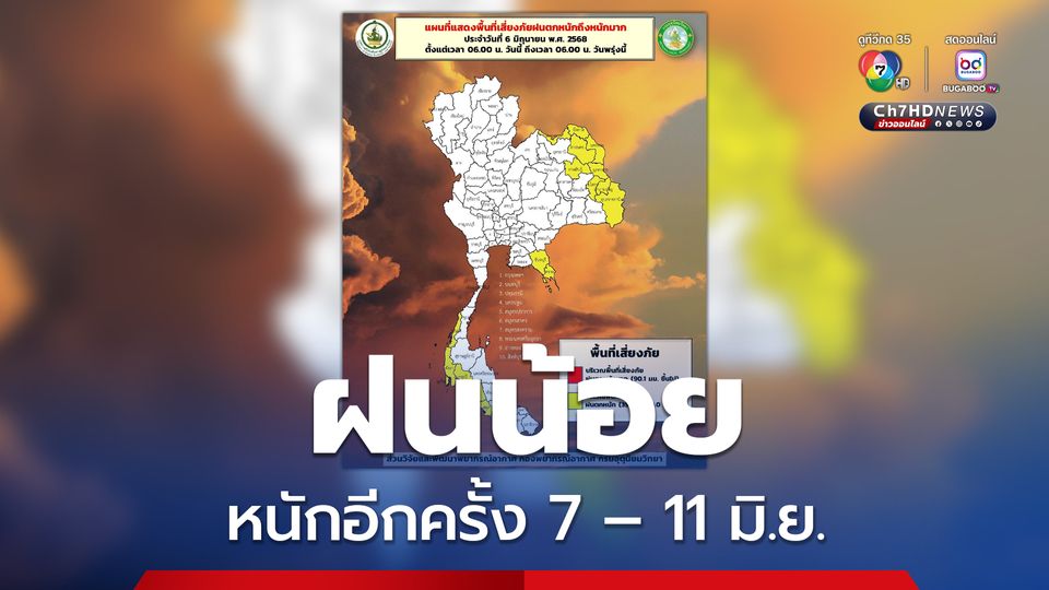 อนึ่ง ในช่วงวันที่ 7 – 11 มิ.ย. ประเทศไทยจะมีฝนเพิ่มขึ้น และมีฝนตกหนักถึงหนักมากบางแห่ง ส่วนคลื่นลมบริเวณทะเลอันดามันและอ่าวไทยจะมีกำลังแรงขึ้น โดยทะเลอันดามันมีคลื่นสูง 2 - 3 เมตร บริเวณที่มีฝนฟ้าคะนองคลื่นสูงมากกว่า 3 เมตร อ่าวไทยมีคลื่นสูง 1 - 2 เมตร บริเวณที่มีฝนฟ้าคะนองคลื่นสูงมากกว่า 2 เมตร เนื่องจากร่องมรสุมกำลังปานกลางจะเลื่อนลงมาพาดผ่านภาคเหนือ ภาคตะวันออกเฉียงเหนือ และภาคกลางตอนบน เข้าสู่หย่อมความกดอากาศต่ำบริเวณทะเลจีนใต้ตอนกลาง ประกอบกับมรสุมตะวันตกเฉียงใต้ที่พัดปกคลุมทะเลอันดามัน ภาคกลางตอนล่าง ภาคใต้ ภาคตะวันออก และอ่าวไทยจะมีกำลังแรงขึ้น