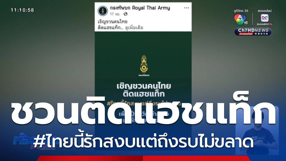 กองทัพบก เชิญชวนคนไทย ร่วมกันติดแฮชแท็ก #ไทยนี้รักสงบแต่ถึงรบไม่ขลาด เพื่อเป็นขวัญกำลังใจแก่พี่น้องทหารทุกนาย