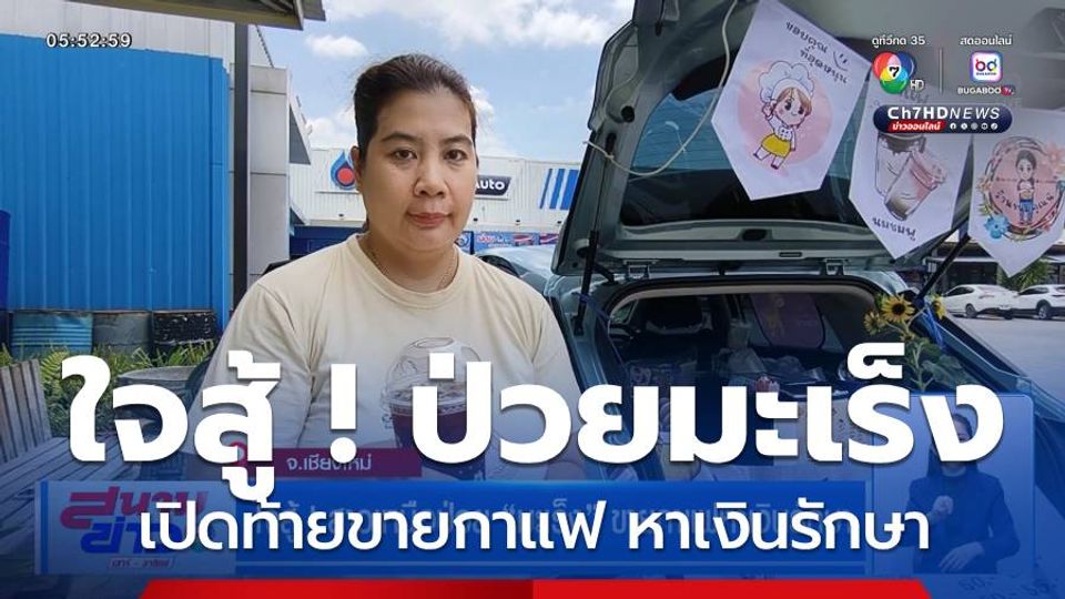 สนามข่าวเสาร์-อาทิตย์ - หญิงสาวป่วยมะเร็งตกงานแต่ไม่ท้อ สู้ชีวิต ขับรถเก๋งคู่ใจเปิดท้ายขายกาแฟ หาเงินรักษาตัวเอง
