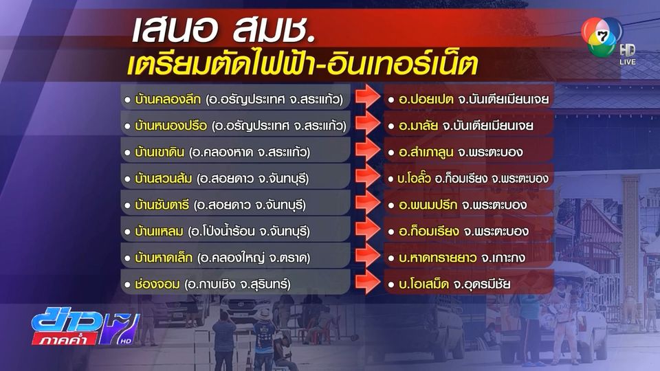 ข่าวภาคค่ำ - แม่ทัพภาคที่ 2 ยืนยันไม่ถอนกำลังออกจากพื้นที่ชายแดน ไทย-กัมพูชา เตรียมเดินหน้าเสนอมาตรการ ตัดไฟฟ้า 9 จุด ในพื้นที่กาสิโน ล่าสุด กัมพูชาถอนกำลังออกจากพื้นที่ช่องบกแล้ว