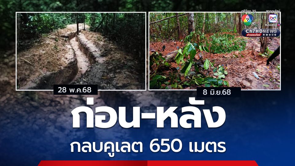เปรียบเทียบให้เห็นกันชัด ๆ ก่อน-หลัง กลบคูเลต ขุดจากจุดต้นสัตบรรณถึงสามแยกลาว ระยะทาง 650 เมตร ซึ่งเป็นพื้นที่อ้างสิทธิ์