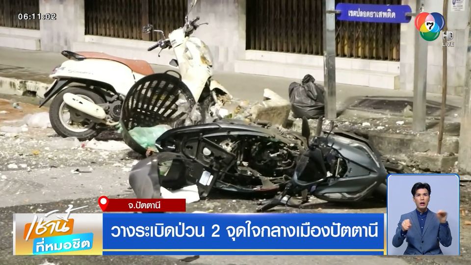 เช้านี้ที่หมอชิต - เมื่อคืนที่ผ่านมา เกิดเหตุระเบิดหน้าตลาดโต้รุ่ง ใจกลางเมืองปัตตานี 2 ลูกซ้อน ทำให้ประชาชนผู้บริสุทธิ์บาดเจ็บ 1 คน