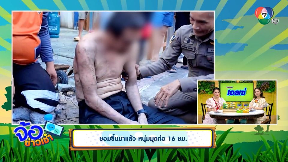จ้อข่าวเช้า - ยอมขึ้นมาแล้ว หนุ่มมุดท่อ 16 ชม.