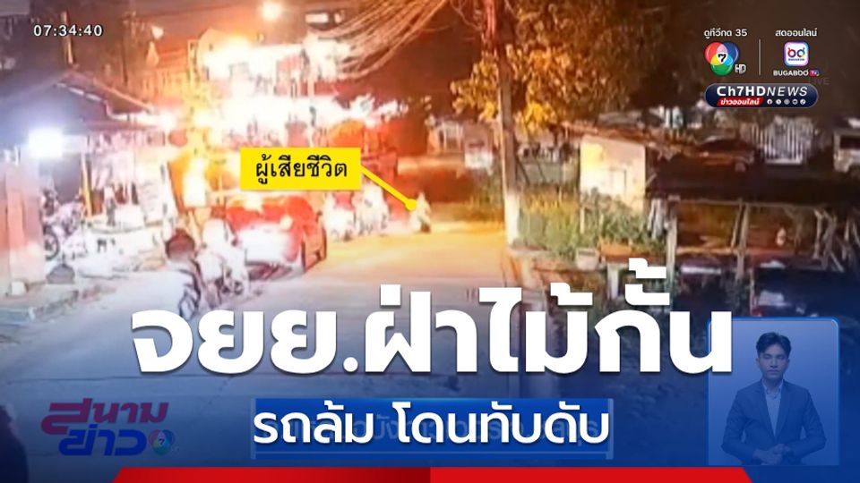 สนามข่าว 7 สี - รถจักรยานยนต์พยายามขี่ฝ่าไม้กั้น แต่ตอนนั้นไม่รู้คนขี่นึกอะไร ลักษณะเหมือนกับลังเล ทำให้ล้มไปทั้งคนและรถ ถูกรถไฟทับเสียชีวิต