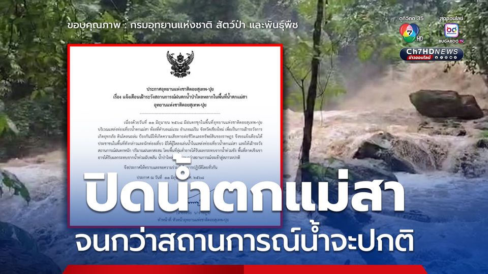 แต่ทางอุทยานฯ ขอความร่วมมือจากนักท่องเที่ยวงดเดินทางมาท่องเที่ยวในบริเวณน้ำตกแม่สาจนกว่าสถานการณ์จะกลับสู่ภาวะปกติ เพื่อความปลอดภัยของทุกคน