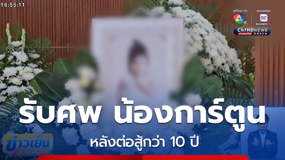 ข่าวเย็นประเด็นร้อน - 11 ปีเต็ม ที่แม่น้องการ์ตูน รอคอยการเยียวยา จากคู่กรณีเมาแล้วขับรถพุ่งชนน้อง จนป่วยติดเตียง รอจนกระทั่งน้องการ์ตูน สาวน้อยหน้าตาน่าเอ็นดู หมดแรงที่จะสู้ต่อ วันนี้คุณแม่เดินทางไปรับศพน้องการ์ตูนที่โรงพยาบาล เพื่อไปประกอบพิธีทางศาสนา