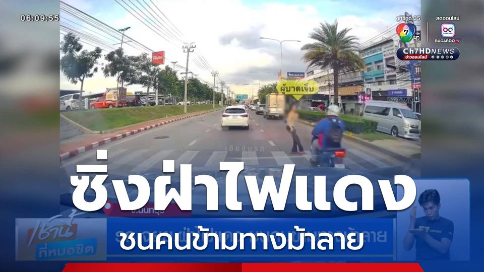 รถ จยย.ฝ่าไฟแดง ชนคนข้ามทางม้าลาย จ.นนทบุรี