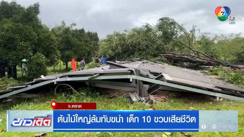 ข่าวเด็ดภาคดึก - พายุถล่มจังหวัดตราด พัดต้นไม้ใหญ่ล้มทับขนำในสวนผลไม้ ทำให้เด็กอายุ 10 ขวบ ที่นอนเล่นโทรศัพท์อยู่ เสียชีวิต