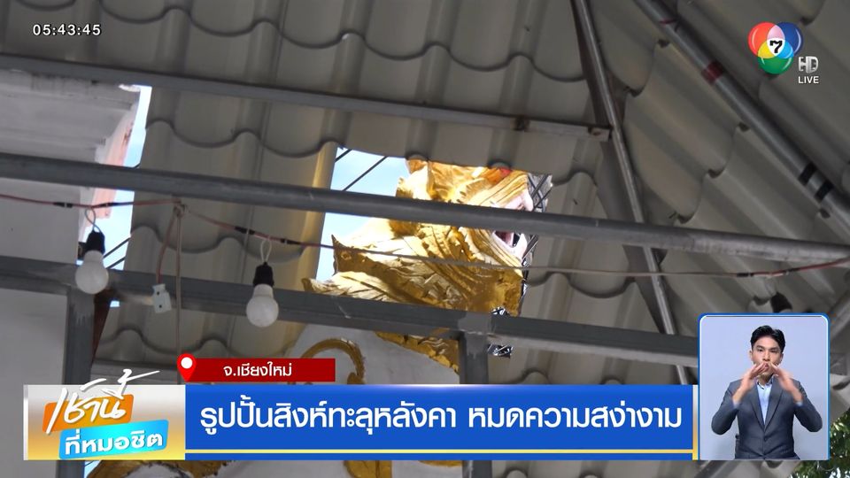เช้านี้ที่หมอชิต - ชาวบ้านเป็นห่วง รูปปั้นสิงห์หน้าวัดดังเมืองเชียงใหม่หัวทะลุหลังคา หมดความสง่างาม