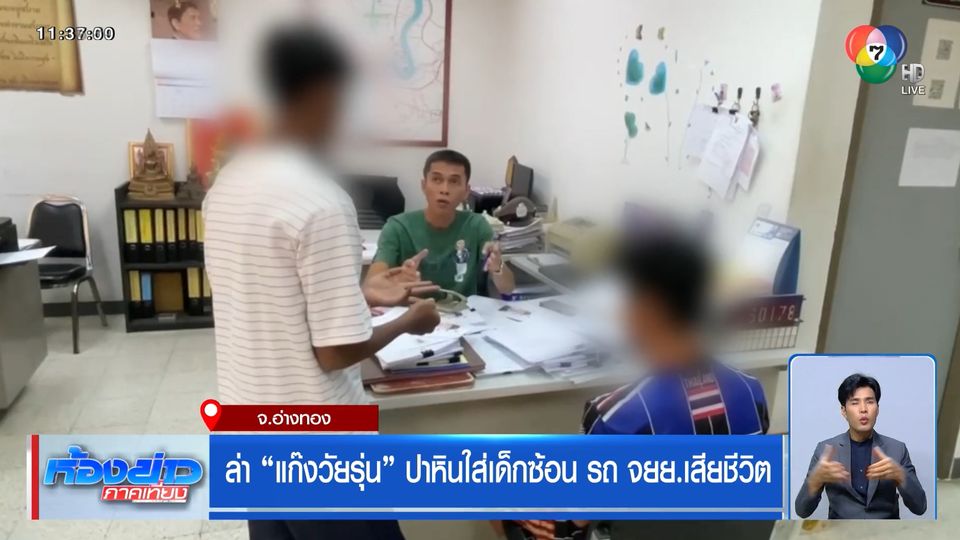 ห้องข่าวภาคเที่ยง - แม่ของวัยรุ่นที่เสียชีวิต โวยลั่นกลางโรงพัก สภ.เมืองอ่างทอง ขอให้ตำรวจตามล่าจับกุมตัวแก๊งวัยรุ่น ที่ขับรถไล่ล่ากันมาดำเนินคดี หลังลูกชายถูกขว้างหินใส่หน้า เจ็บหนักและไปเสียชีวิตที่โรงพยาบาล