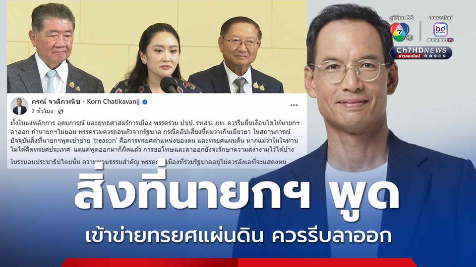 "กรณ์ จาติกวณิช" แนะพรรคร่วมควรรีบยื่นเงื่อนไขให้นายกฯ ลาออก กรณีคลิปเสียงเกินเยียวยา ลั่นสิ่งที่นายกฯพูดเข้าข่ายทรยศแผ่นดิน