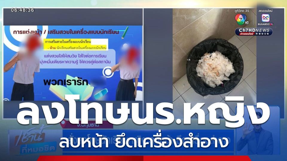 เช้านี้ที่หมอชิต - เพจดังแฉ โรงเรียนย่านปทุมธานี สั่งตรวจระเบียบจับนักเรียนที่แต่งหน้าไปโรงเรียนต้องล้างหน้า พร้อมยึดเครื่องสำอาง 15 วัน