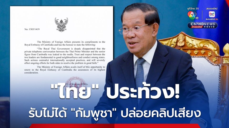 “ไทย” ประท้วง! “สมเด็จฯ ฮุนเซน” ปล่อยคลิปเสียง ทำลายความไว้เนื้อเชื่อใจร้ายแรง ลั่นไม่ควรได้รับการยอมรับ และความไว้วางใจจากประชาคมระหว่างประเทศ
