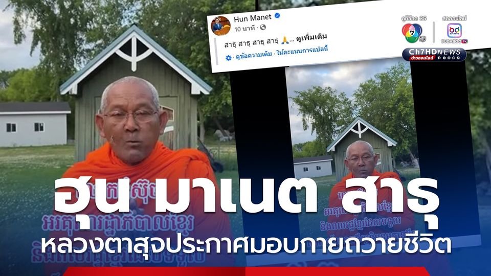 ฮุน มาเนต สาธุ แชร์คลิปหลวงตาสุจ ประกาศมอบกายถวายชีวิตให้รัฐบาลขะแมร์ ก่อนหน้านี้นายกฯกัมพูชา ประกาศต้อนรับให้มาอยู่ในประเทศ