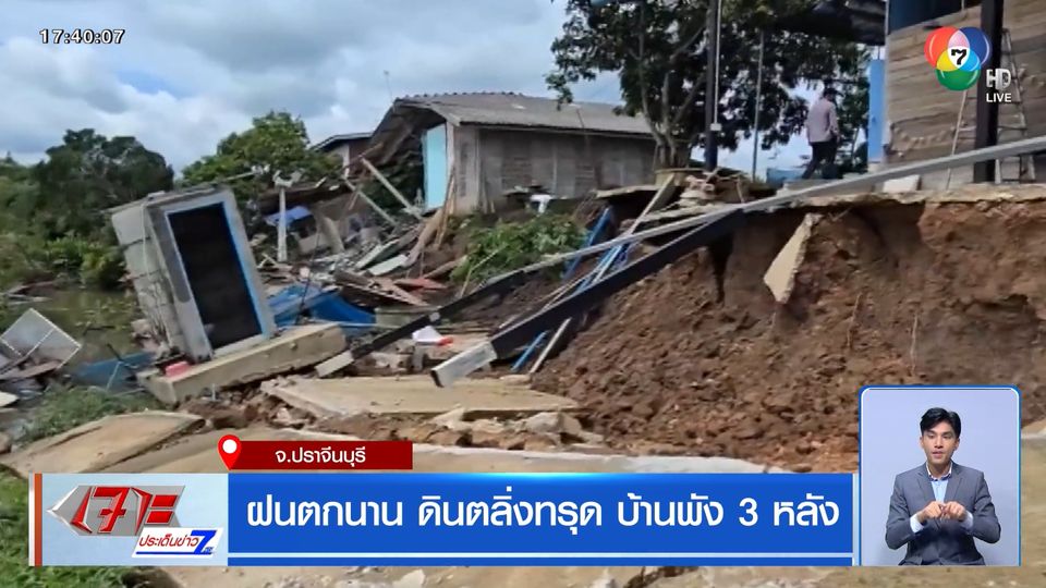 เจาะประเด็นข่าว 7HD - เกิดเหตุระทึก ชาวบ้านริมน้ำขวัญผวา ดินไหลกลางดึก ทำให้บ้านทรุดตัว ไหลลงไปในแม่น้ำปราจีนบุรี เคราะห์ดีที่ชาวบ้านหอบข้าวของหนีเอาตัวรอดออกมาได้