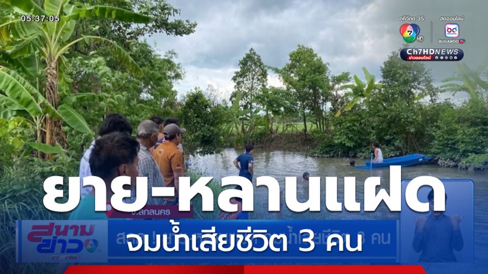 สนามข่าวเสาร์-อาทิตย์ - เกิดเหตุสลด คุณยายกับหลานสาวฝาแฝดจมน้ำในลำห้วย เสียชีวิตทั้ง 3 คน คาดว่าลงไปล้างตัวหลังดำนาเสร็จ