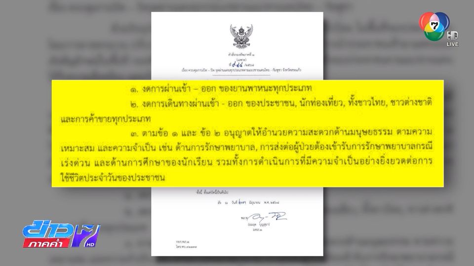โดยงดการผ่านเข้า-ออก ของยานพาหนะทุกประเภท งดการเดินทางผ่านเข้า-ออก ของประชาชน การค้าขายทุกประเภท นักท่องเที่ยว ทั้งชาวไทยและชาวต่างชาติ อนุญาตให้อำนวยความสะดวกด้านมนุษยธรรมตามความ เหมาะสม เช่น ด้านการรักษาพยาบาล การส่งต่อผู้ป่วยต้องเข้ารับการรักษาพยาบาลกรณีเร่งด่วน ด้านการศึกษาของนักเรียนและนักศึกษาในพื้นที่ การซื้อขายผักผลไม้ เครื่องอุปโภคบริโภคในครัวเรือน ตามความเหมาะสมและจำเป็น ตั้งแต่วันที่ 23 มิถุนายน 2568 เป็นต้นไป