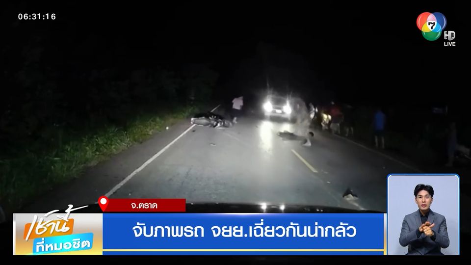 เป็นภาพจากกล้องหน้ารถที่บันทึกาภพรถกระบะสีขาว ที่วิ่งมาบนถนนสายแสนตุ้ง-พนมพริก ตำบลแสนตุ้ง อำเภอเขาสมิง จังหวัดตราด แม้จะมีผู้ที่อยู่ในเหตุการณ์ เข้าไปพยายามโบกให้รถกระบะสีขาวทราบว่า ที่จุดดังกล่าวเพ่ิงมีอุบัติเหตุรถจักรยานยนต์เฉี่ยวชนกัน และมีผู้บาดเจ็บ 2 คน