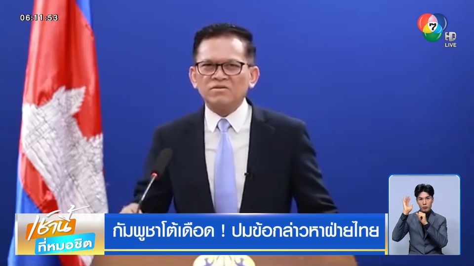 เช้านี้ที่หมอชิต - ความเคลื่อนไหวของทางการกัมพูชา หลังจากที่ไทยยกระดับมาตรการจำกัดการผ่านแดนทุกด่านในพื้นที่แนวชายแดน เมื่อวาน (24 มิ.ย.) ก็ไม่ได้มีการตอบโต้ในประเด็นนี้ แต่มีการตอบโต้ประเด็นอื่น ๆ จากโฆษกรัฐบาลกัมพูชาอย่างรุนแรง เกี่ยวกับข้อกล่าวหาของไทย
