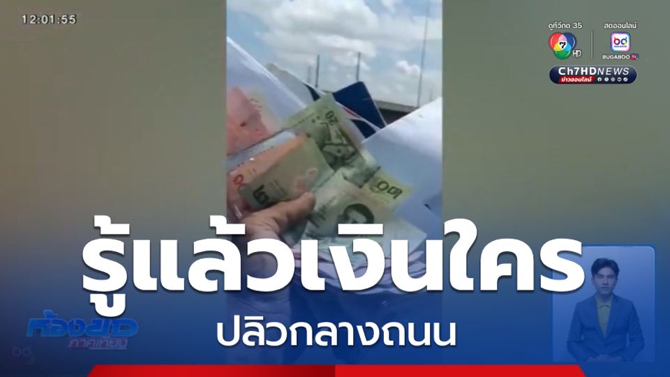 ห้องข่าวภาคเที่ยง - เงินปลิวกลางอากาศ ใครเห็นคงคิดว่าเป็นลาภลอย ก็มีทั้งคนที่เก็บได้แล้วขับรถหนีไปเลย ขณะเดียวกันก็มีพลเมืองดี เข้าไปช่วยเก็บได้เงินรวมกว่า 20,000 บาท เตรียมส่งคืนเจ้าของ แต่ใครละที่เป็นเจ้าของ