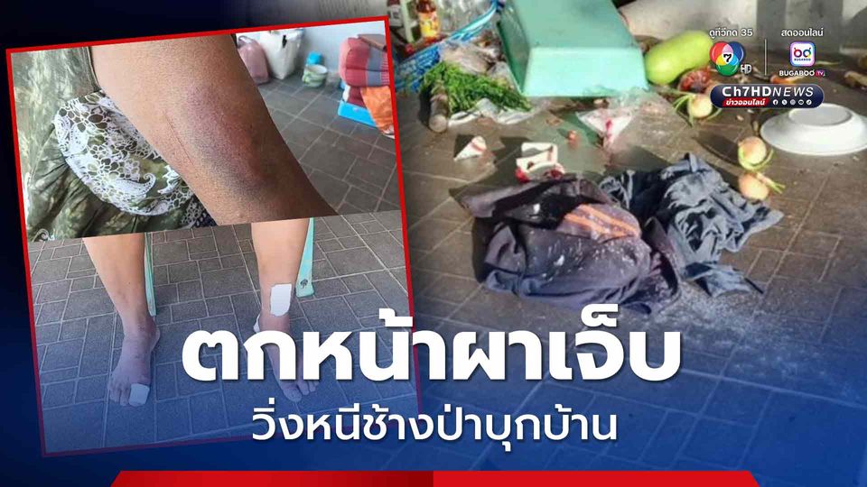 โดย นางบาง อายุ 65 ปี เจ้าของบ้านที่ได้รับบาดเจ็บ เผยว่า ตนกำลังทำกับข้าวตามปกติ โดยขณะนั้นสามีได้ออกไปซื้อของนอกบ้าน ตนหันไปเห็นช้างป่าตัวหนึ่งเดินเข้ามาอย่างเงียบ ๆ ทางหน้าบ้าน ก่อนจะพุ่งตรงเข้ามาหาตน ด้วยความตกใจ จึงวิ่งหนีขึ้นเขาที่อยู่ห่างจากบ้านประมาณ 100 เมตร แต่ช้างยังวิ่งไล่ตามอย่างกระชั้นชิด จนตนพลัดตกหน้าผาหินสูงราว 5–6 เมตร ได้รับบาดเจ็บหลายแห่ง ทั้งศีรษะแตก แขนขาถลอก ลำตัวฟกช้ำ และแผลถลอกที่หน้าแข้งหลายจุด