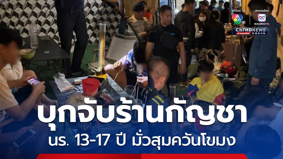 เมื่อเจ้าหน้าที่เปิดประตูร้านเข้าไป ได้กลิ่นกัญชาคละคลุ้งไปทั่วทั้งบริเวณ ส่วนภายในร้านมีโต๊ะตั้งอยู่ โต๊ะตัวแรกก็พบเด็กชายและเด็กหญิงอายุ 13 ปี นั่งอยู่บนโต๊ะ มีเขียงละกัญชาหั่นฝอยอยู่บนเขียง โดยเด็กทั้ง 2 คนอยู่ในอาการสะลึมสะลือ ส่วนโต๊ะตัวที่ 2 เป็นโต๊ะยาว มีเด็กวัยรุ่นนั่งสูบกัญชากันอยู่ ควันโขมงไปทั้งห้อง บนโต๊ะมีเขียงและมีบ้องกัญชาขนาดใหญ่ตั้งอยู่บนโต๊ะ มีไฟแช็ก โดยผู้ที่นั่งล้อมวงสูบกัญชา เป็นเด็กวัยรุ่นอายุ 14 -17 ปี รวม 8 คน แต่ละคนมีแววตาเคลิบเคลิ้มและไม่มีท่าทีที่จะหลบหนีแต่อย่างใด โดยข้างโต๊ะ แต่ละโต๊ะจะมีถังใส่ขวดเปล่าที่มีการดื่มน้ำกระท่อมหมดแล้ววางไว้ข้าง ๆ