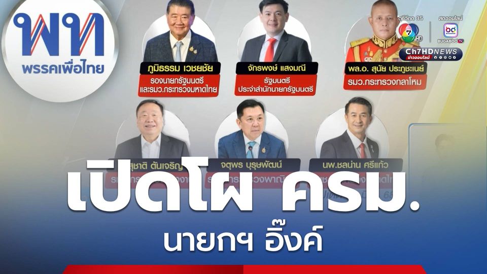 พรรคเพื่อไทย มีรายงานว่า นายภูมิธรรม เวชยชัย ย้ายไปเป็นรัฐมนตรีว่าการกระทรวงมหาดไทย ควบตำแหน่งรองนายกรัฐมนตรี, พลเอกสุนัย ประภูชะเนย์ เป็นรัฐมนตรีว่าการกระทรวงกลาโหม, นายสุชาติ ตันเจริญ เป็นรัฐมนตรีว่าการกระทรวงแรงงาน, นายจตุพร บุรุษพัฒน์ เป็นรัฐมนตรีว่าการกระทรวงพาณิชย์, นพ.ชลน่าน ศรีแก้ว เป็นรัฐมนตรีช่วยว่าการกระทรวงมหาดไทย และ นายจักรพงษ์ แสงมณี เป็นรัฐมนตรีประจำสำนักนายกฯ