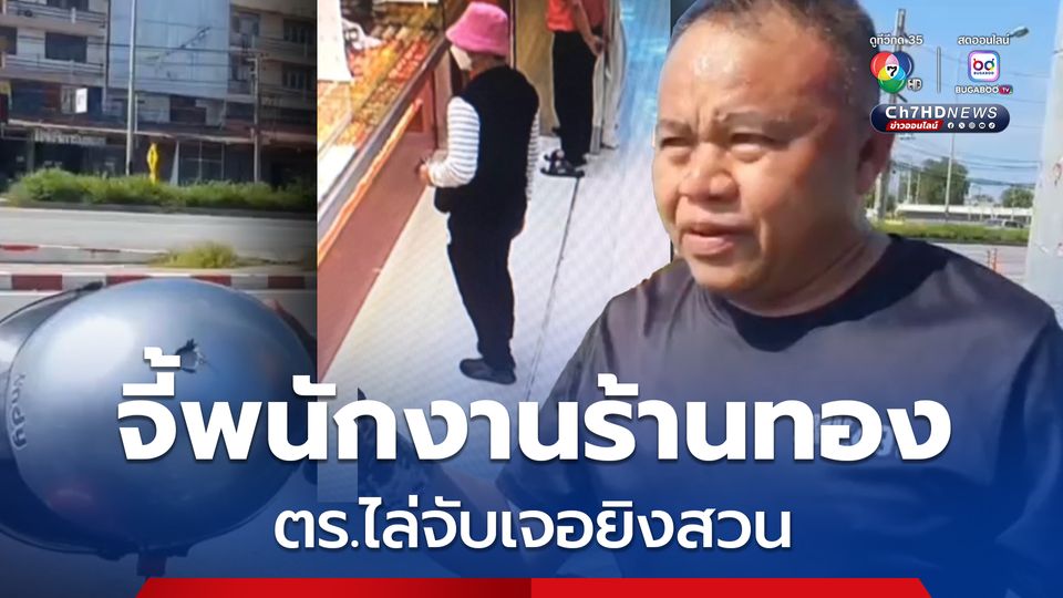 คนร้ายควงปืนจี้พนักงานร้านทองกลางห้างฯ ได้ทองรูปพรรณกว่า 38 บาท ตำรวจนอกเครื่องแบบเจอเหตุการณ์ไล่จับ เจอคนร้ายยิงใส่ 1 นัด โชคดีหลบทัน โดนหมวกกันน็อก แต่แย่งปืนเอาไว้ได้ ก่อนจะวิ่งหลบหนีไปได้
