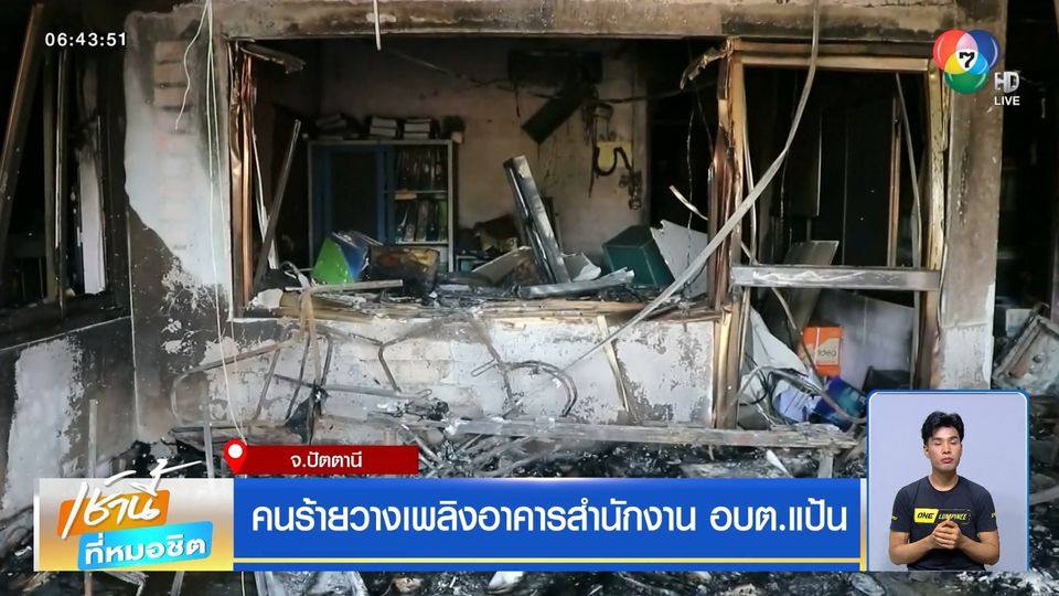 คนร้ายวางเพลิงอาคารสำนักงาน อบต.แป้น จ.ปัตตานี