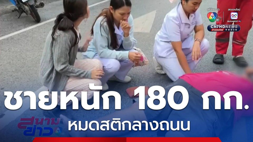 ภาพนาทีที่เจ้าหน้าที่พยาบาล 3 คน กำลังให้การช่วยเหลือชายน้ำหนักเกือบ 180 กิโลกรัม ที่นอนหมดสติกลางถนน ข้าง ๆ พบรถจักรยานยนต์จอดอยู่ พยาบาลสาวทั้ง 3 คน เข้าช่วยเหลือตรวจชีพจรและปฐมพยาบาลให้เบื้องต้น ก่อนจะโทรศัพท์แจ้งรถกู้ชีพ เหตุเกิดตรงข้ามธนาคารกสิกรไทย ตำบลในเมือง อำเภอพิมาย จังหวัดนครราชสีมา