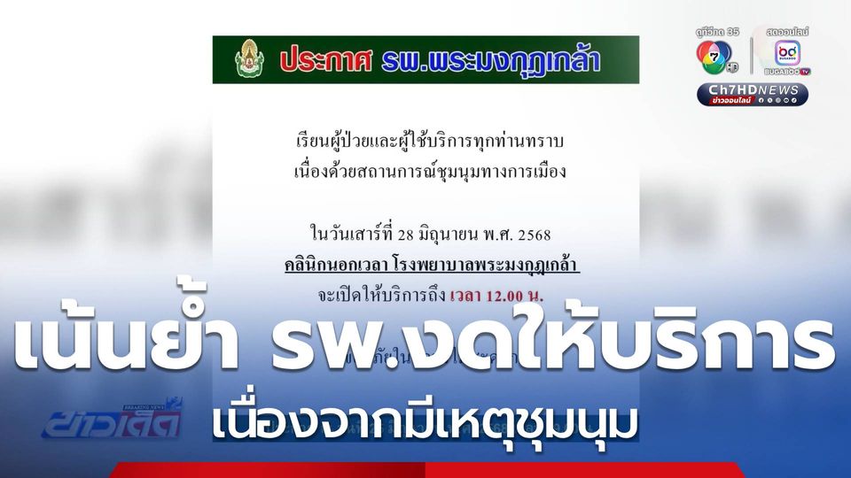 ข่าวเด็ด 7 สี - ขณะที่ หลายโรงพยาบาลที่อยู่ใกล้พื้นที่การชุมนุม ได้ปรับเวลาการให้บริการ