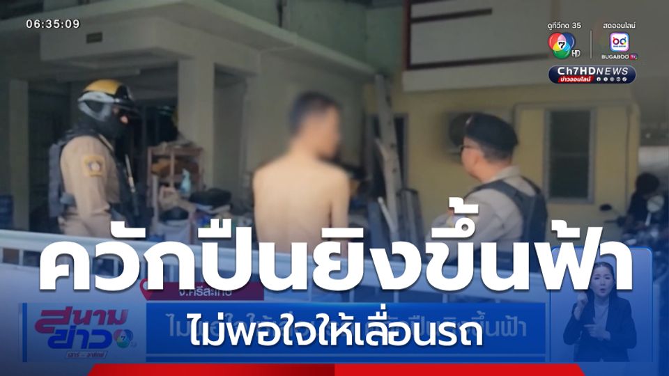 ตำรวจ สภ.ศรีสะเกษ เข้าตรวจเจรจากับนายสาคร อายุ 56 ปี หลังนำปืนมายิงขึ้นฟ้า 1 นัด ภายในหมู่บ้านเคหะชุมชน ซอย 3 หลังห้างสรรพสินค้าแห่งหนึ่ง ในจังหวัดศรีสะเกษ