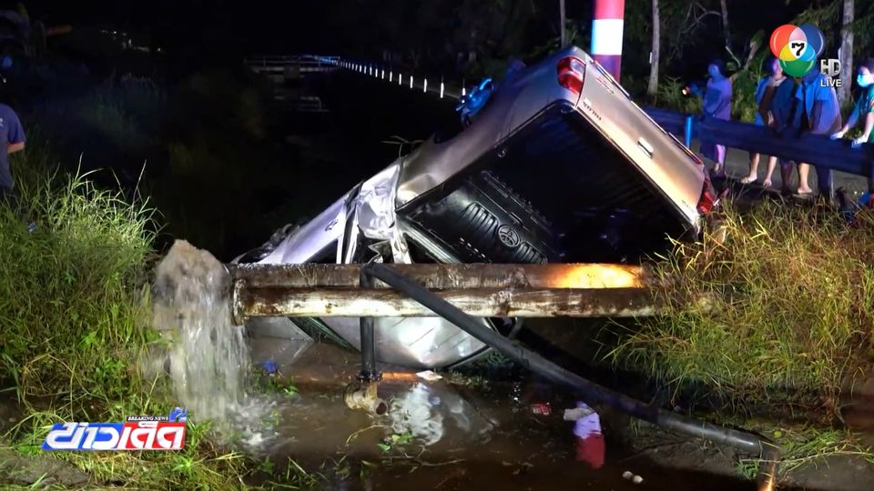 ข่าวเด็ด 7 สี - หนุ่มขับรถกระบะรีบไปรับแฟน เจอรถคันหน้าเบรกกะทันหัน เบรกตาม ฝนตกถนนลื่น ทำให้รถเสียหลักพุ่งตกคลอง