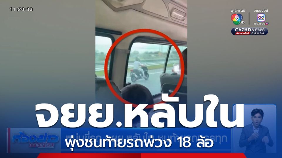 เจอแบบนี้ทำเอาผู้โดยสาร และคนใช้รถใช้ถนน ถึงกับต้องช่วยลุ้นกันตัวโก่ง ร้องกันเสียงหลง เพราะจู่ ๆ รถตักรยานยนต์ ที่เป็นผู้ชายที่ขี่รถ ใส่หมวกกันน็อกเต็มใบ ขี่มาบนถนนมอเตอร์เวย์ มุ่งหน้าบางปะอิน ไปพุ่งชนท้ายรถบรรทุกพ่วง 18 เข้าอย่างจัง ต่อหน้าต่อตา ทำให้ผู้โดยสารทั้งเด็กและผู้ใหญ่ ที่นั่งมาในรถตู้เห็น ต้องร้องกรี๊ดเพราะความตกใจ