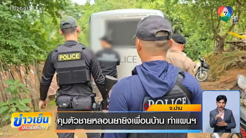 ข่าวเย็นประเด็นร้อน - ชายหลอนยาเสพติด คิดว่าเพื่อนบ้านจะมาทำร้าย ใช้ปืนรัวยิงจนเสียชีวิต และยังมีแม่และพี่สะใภ้คนตายถูกยิงเจ็บ ล่าสุดตำรวจนำตัวไปทำแผนระกอบคำรับสารภาพแล้ว