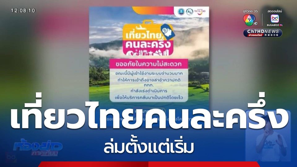 ห้องข่าวภาคเที่ยง - ชาวเน็ตโวย เที่ยวไทยคนละครึ่ง ระบบล่มตั้งแต่เริ่ม เปิดลงทะเบียน 08.00 น. เจอพลังนักเที่ยวระดมกดลงทะเบียนกันตั้งแต่เช้า สุดท้าย ยังไม่ได้สิทธิสักคน