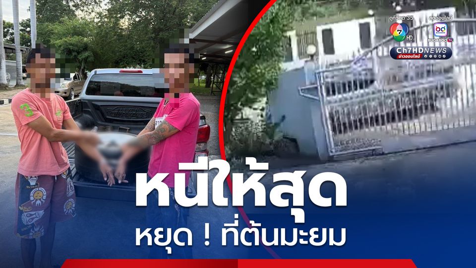หนีให้สุด แล้วหยุดที่ต้นมะยม ! ตำรวจตามไล่ล่า 2 คนร้าย ขโมยล้อรถยนต์ชาวบ้าน พยายามซิ่งกระบะหลบหนี แต่สุดท้ายจนมุมเพราะเสียหลักชนต้นมะยม ตรวจค้นพบยาบ้า